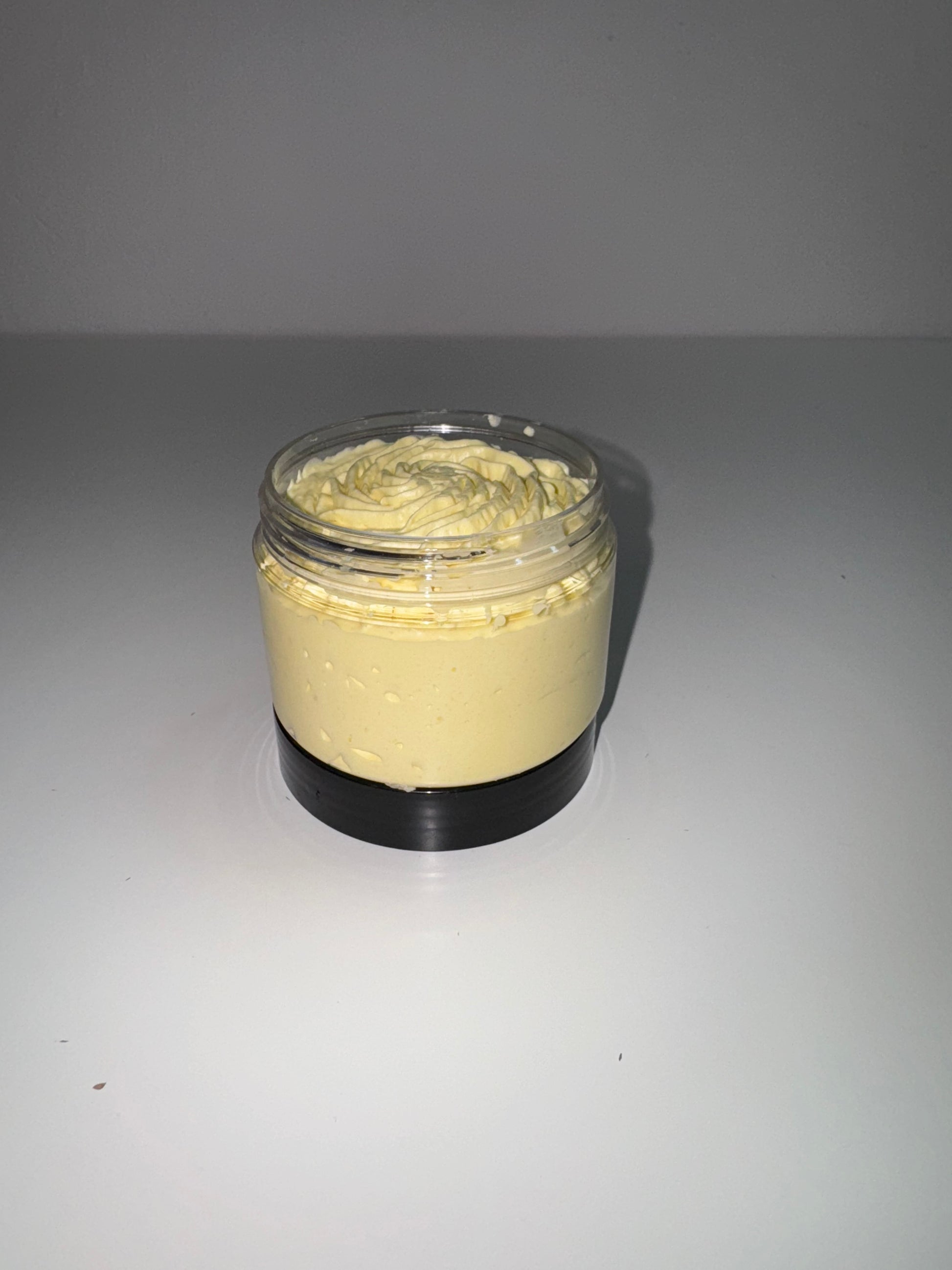 Our unscented whipped body butter made with mango and Shea butters, and mixed with love!